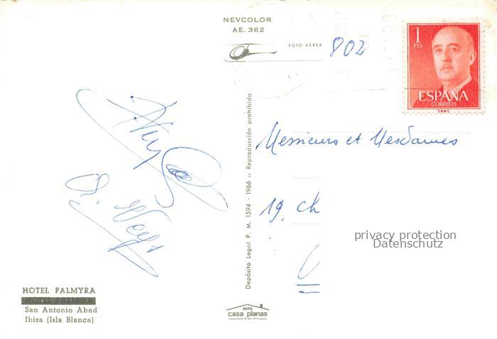 74142381 old postcard San Antonio Abad Ibiza ES Hotel Palmyra Swimming Pool Strand postalisch gelaufen Fliegeraufnahme Erhaltung siehe scans [FriedD77] KatCode: 11510