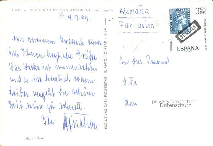 old postcard San Antonio Abad Landkarte Strand Kueste postalisch gelaufen Erhaltung siehe scans