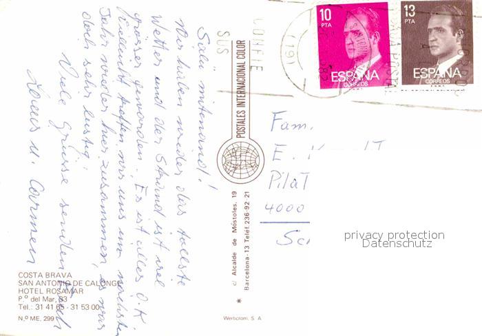 old postcard San Antonio de Calonge Hotel Rosamar postalisch gelaufen Erhaltung siehe scans [LiesaD40]