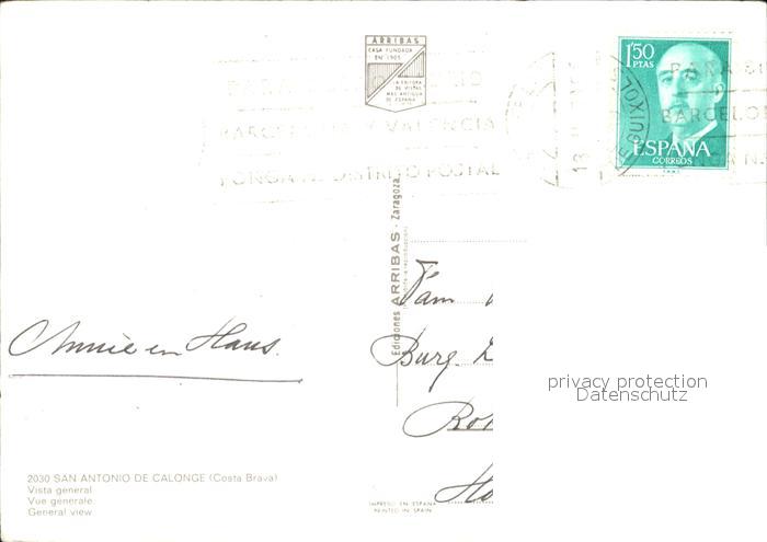 old postcard San Antonio de Calonge Vista general Playa Strand Hotels postalisch gelaufen Erhaltung siehe scans