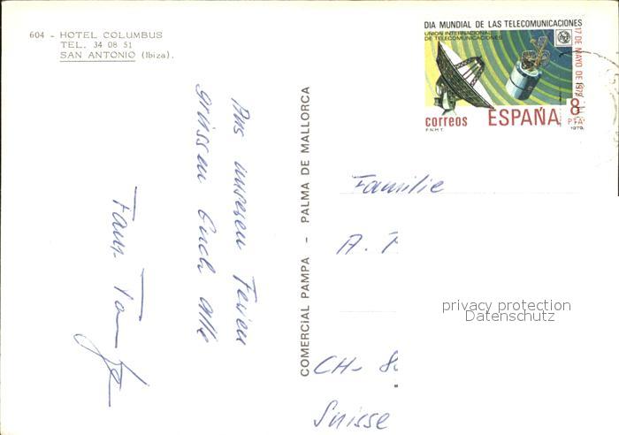 old postcard San Antonio Ibiza Hotel Columbus Strand Segelboot postalisch gelaufen Erhaltung siehe scans [FriedD77]