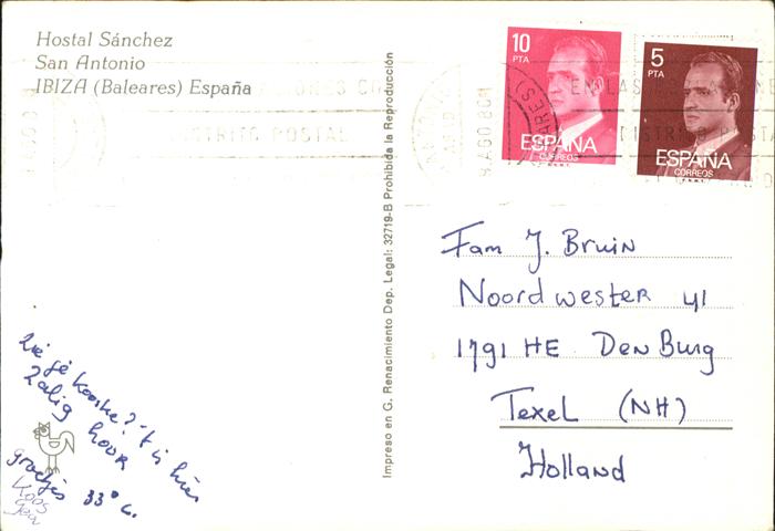 old postcard San Antonio Sant Antoni de Portmany Hostal Sanchez Piscina postalisch gelaufen Erhaltung siehe scans