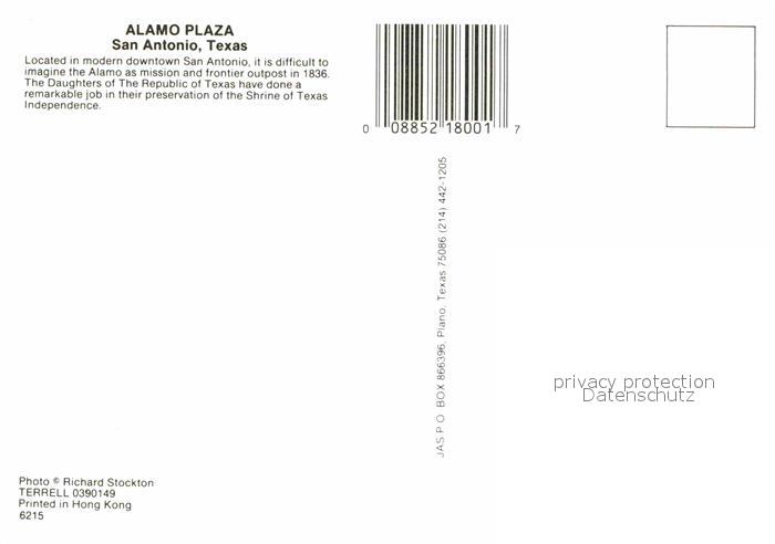 72707531 San Antonio Texas Alamo Plaza postalisch nicht gelaufen Erhaltung siehe scans [AndreD76] KatCode: 14140460000000