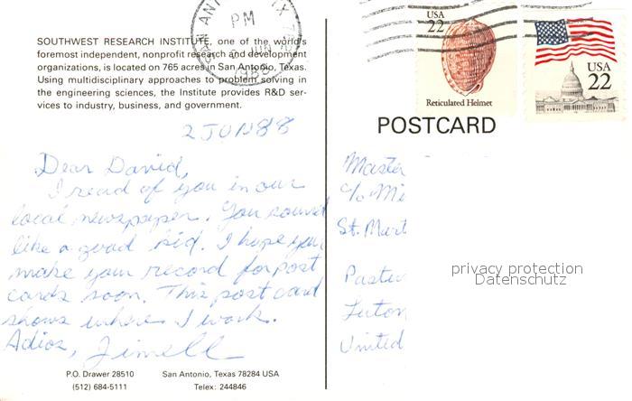 73078973 old postcard San Antonio Texas Fliegeraufnahme postalisch gelaufen Erhaltung siehe scans [KathaD81] KatCode: 14140460000000