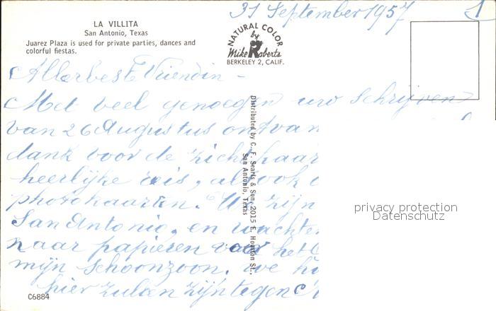 72424535 San Antonio Texas La Villita Juarez Plaza postalisch nicht gelaufen Erhaltung siehe scans KatCode: 14140460000000