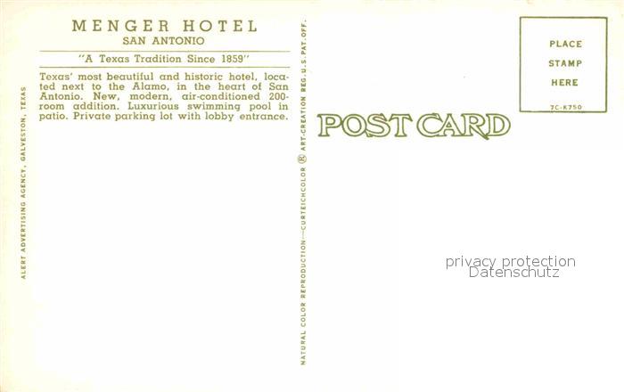 72853921 San Antonio Texas Menger Hotel Lobby postalisch nicht gelaufen Erhaltung siehe scans [FriedD77] KatCode: 14140460000000
