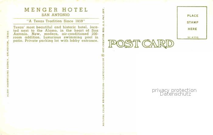 72905630 San Antonio Texas Menger Hotel Lobby postalisch nicht gelaufen Erhaltung siehe scans [FriedD77] KatCode: 14140460000000