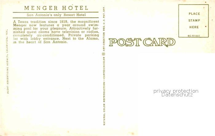72853911 San Antonio Texas Menger Hotel Swimming Pool postalisch nicht gelaufen Erhaltung siehe scans [FriedD77] KatCode: 14140460000000