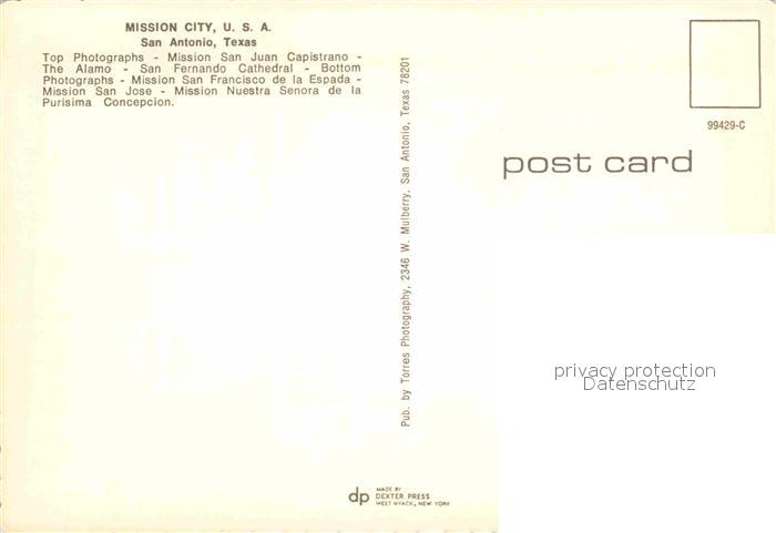 72707538 San Antonio Texas Mission City postalisch nicht gelaufen Erhaltung siehe scans [AndreD76] KatCode: 14140460000000