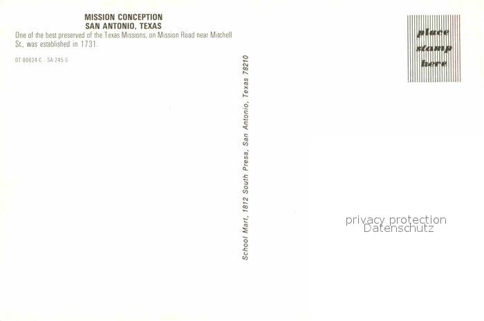 72706963 San Antonio Texas Mission Conception postalisch nicht gelaufen Erhaltung siehe scans [AndreD76] KatCode: 14140460000000