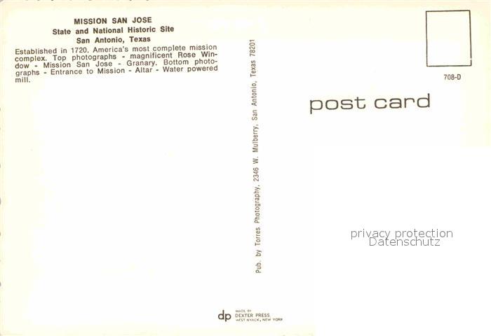 72707528 San Antonio Texas Mission San Jose postalisch nicht gelaufen Erhaltung siehe scans [AndreD76] KatCode: 14140460000000