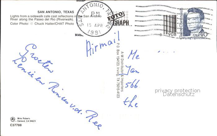 72272897 old postcard San Antonio Texas Paseo del Rio postalisch gelaufen Erhaltung siehe scans KatCode: 14140460000000