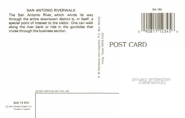 72705597 San Antonio Texas Riverwalk postalisch nicht gelaufen Erhaltung siehe scans [AndreD76] KatCode: 14140460000000
