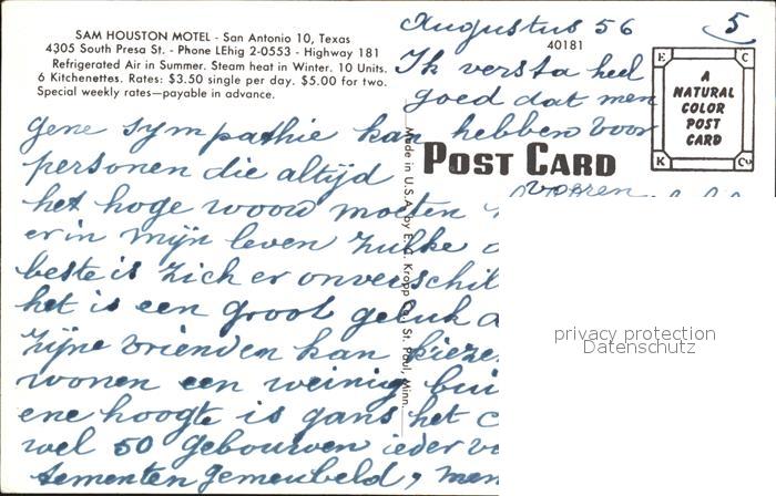 72424534 San Antonio Texas South Presa Sam Houston Hotel postalisch nicht gelaufen Erhaltung siehe scans KatCode: 14140460000000