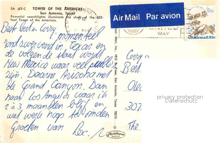 72856196 old postcard San Antonio Texas Tower of the Americas postalisch gelaufen Erhaltung siehe scans [NatalD47] KatCode: 14140460000000