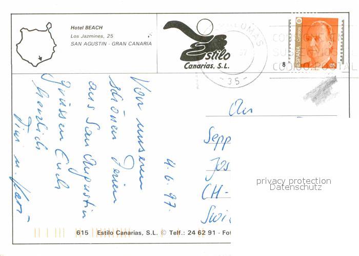 old postcard San Augustin Hotel Beach postalisch gelaufen Erhaltung siehe scans [AndreD76]