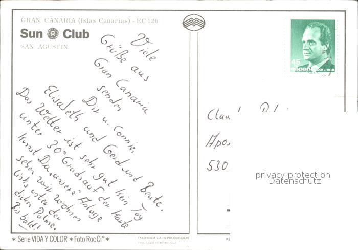 old postcard San Augustin Sun Club postalisch gelaufen Erhaltung siehe scans