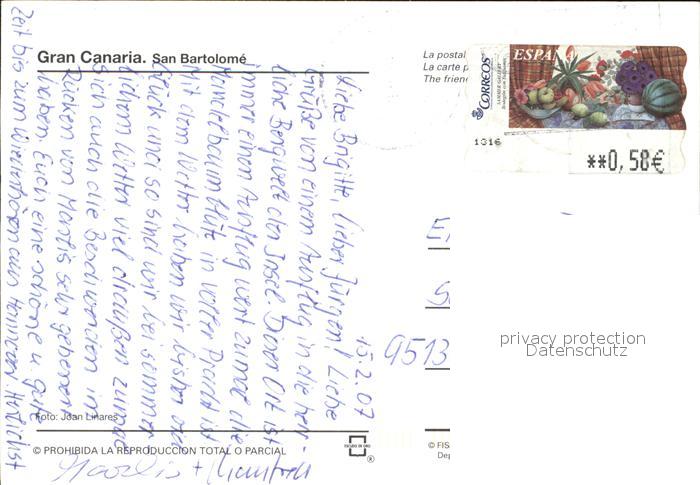 old postcard San Bartolome postalisch gelaufen Erhaltung siehe scans