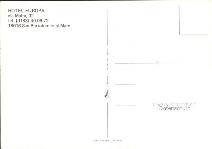 San Bartolomeo al Mare Hotel Eropa Imperia postalisch nicht gelaufen Erhaltung siehe scans
