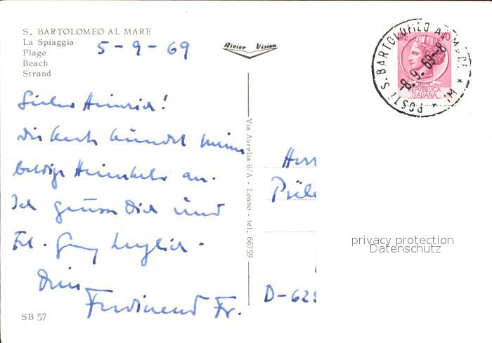old postcard San Bartolomeo al Mare La Spiaggia postalisch gelaufen Erhaltung siehe scans