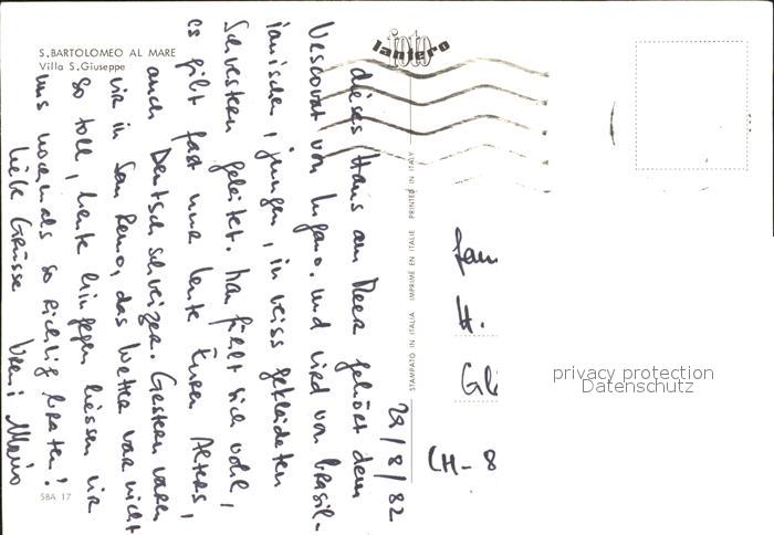 old postcard San Bartolomeo al Mare Villa S. Giuseppe postalisch gelaufen Erhaltung siehe scans