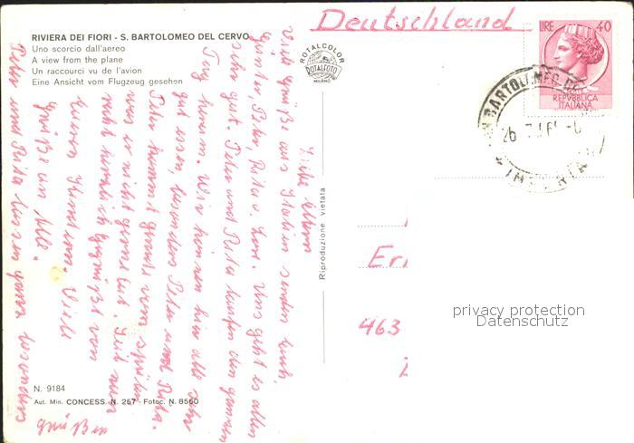 old postcard San Bartolomeo del Cervo Fliegeraufnahme postalisch gelaufen Erhaltung siehe scans