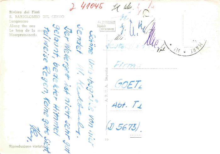 74014824 old postcard SAN BARTOLOMEO DEL CERVO Imperia Liguria Riviera dei Fiori Lungomare postalisch gelaufen Erhaltung siehe scans [WerneD78] KatCode: 11240