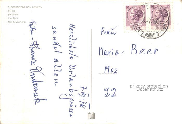 old postcard San Benedetto Del Tronto Il Faro Park Leuchtturm postalisch gelaufen Erhaltung siehe scans