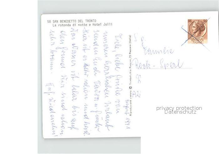San Benedetto Del Tronto Rotonda di notte e Hotel Jolli Fontana postalisch nicht gelaufen Erhaltung siehe scans