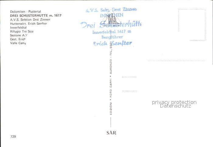 San Candido Innichen Drei Schusterhuette postalisch nicht gelaufen Erhaltung siehe scans