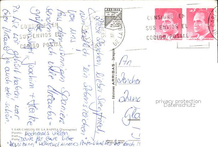 old postcard San Carlos de la Rapita Hafen postalisch gelaufen Erhaltung siehe scans