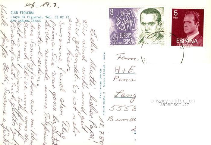 old postcard San Carlos Ibiza Club Figueral postalisch gelaufen Erhaltung siehe scans [NatalD47]