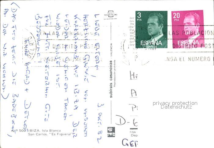 old postcard San Carlos Ibiza Es Figueral Playa Strand postalisch gelaufen Erhaltung siehe scans