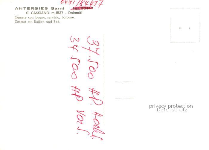 13631144 San Cassiano Badia Hotel Antersies Garni Dolomiten Kuenstlerkarte postalisch nicht gelaufen Erhaltung siehe scans [FriedD77] Frie Katcode 11240
