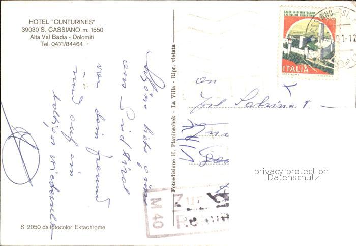old postcard San Cassiano Badia Hotel Cunturines postalisch gelaufen Erhaltung siehe scans