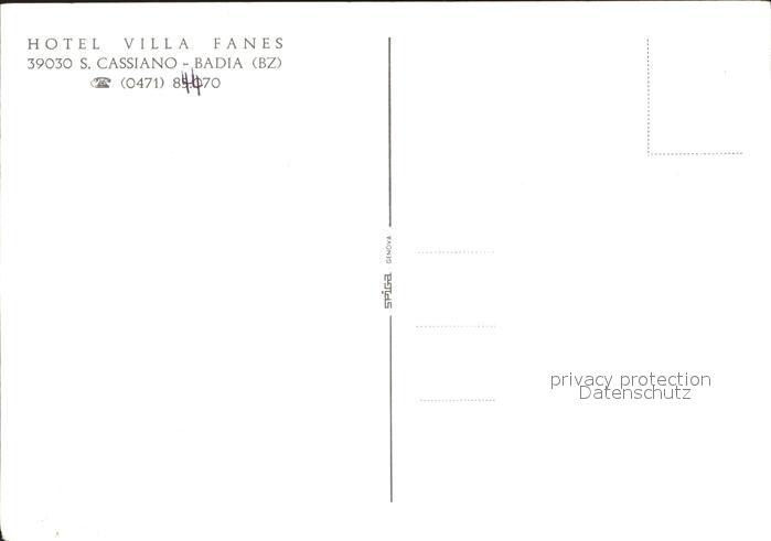 San Cassiano Badia Hotel Villa Fanes postalisch nicht gelaufen Erhaltung siehe scans