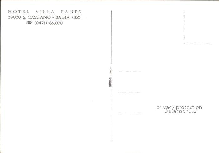 San Cassiano Badia Hotel Villa Fanes postalisch nicht gelaufen Erhaltung siehe scans