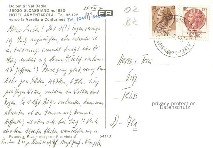 74142048 old postcard San Cassiano Badia St Kassian IT Hotel Armentarola verso la Varella e Conturines postalisch gelaufen Erhaltung siehe scans [WerneD78] KatCode: 11240