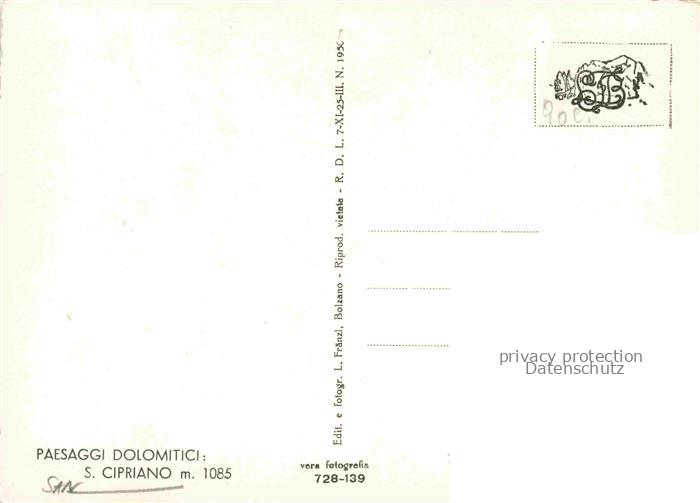 74079697 San Cipriano 1085m St Zyprian Dolomiti IT Panorama Kirche postalisch nicht gelaufen Erhaltung siehe scans [WerneD78] KatCode: 11240