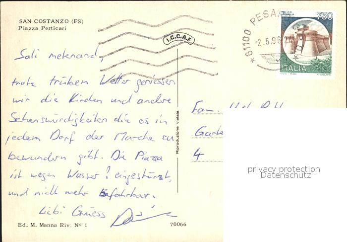 old postcard San Costanzo Piazza Perticari postalisch gelaufen Erhaltung siehe scans