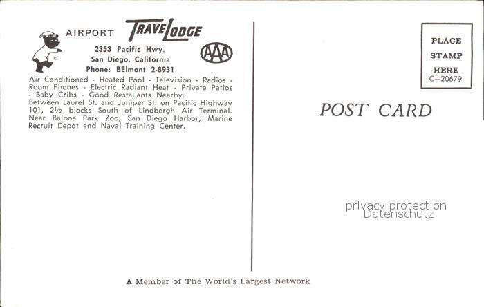72486883 San Diego California Airport Trave Lodge postalisch nicht gelaufen Erhaltung siehe scans KatCode: 14140050000000