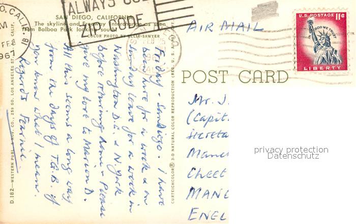 73127844 old postcard San Diego California Balboa Park postalisch gelaufen Erhaltung siehe scans [KathaD81] KatCode: 14140050000000