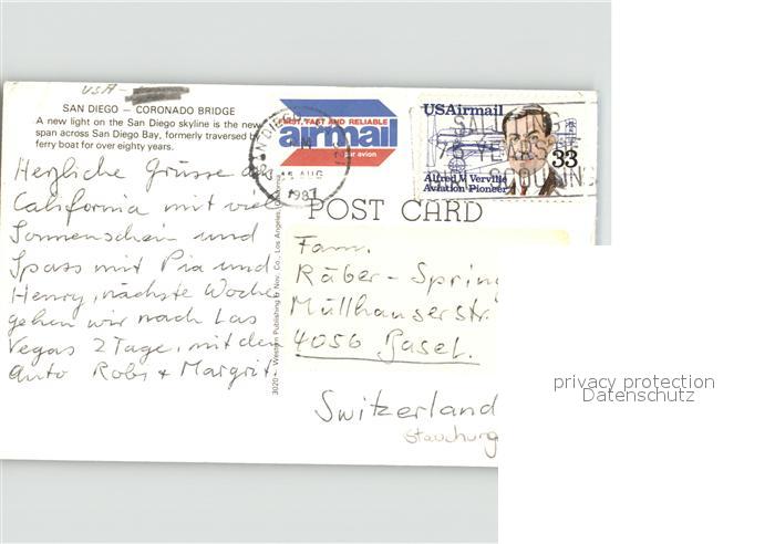 71567912 old postcard San Diego California Coronado Bridge postalisch gelaufen KatCode: 14140050000000