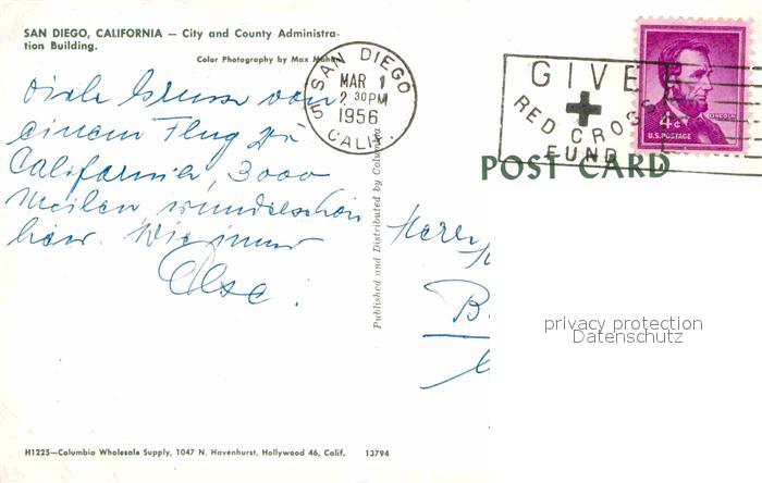 72794143 old postcard San Diego California Country Administation Building postalisch gelaufen Erhaltung siehe scans [LiesaD40] KatCode: 14140050000000