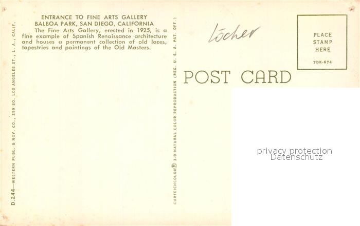 73130321 San Diego California Entrance Fine Arts Gallery Balboa Park postalisch nicht gelaufen Erhaltung siehe scans [NatalD47] KatCode: 14140050000000