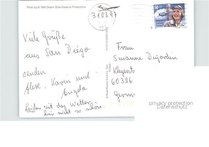 72527526 old postcard San Diego California Fliegeraufnahme postalisch gelaufen Erhaltung siehe scans KatCode: 14140050000000