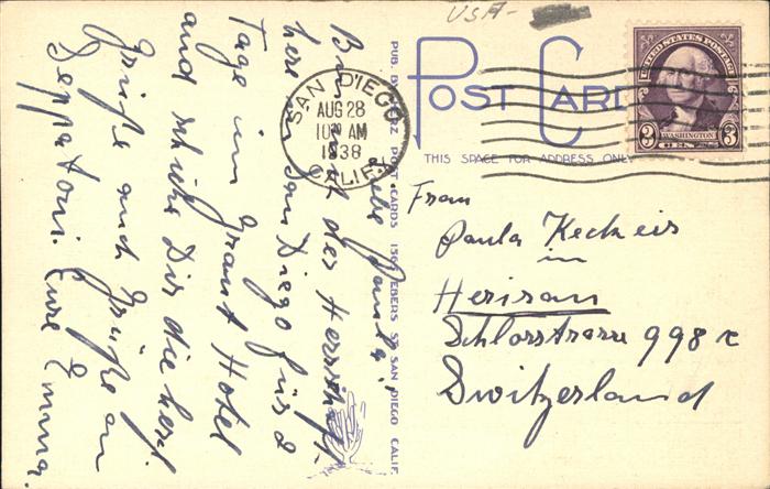11491442 old postcard San Diego California Grant Hotel and Plaza postalisch gelaufen Erhaltung siehe scans KatCode: 14140050000000