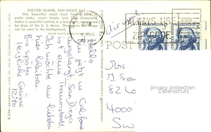 71605236 old postcard San Diego California mit Hafen postalisch gelaufen Erhaltung siehe scans KatCode: 14140050000000
