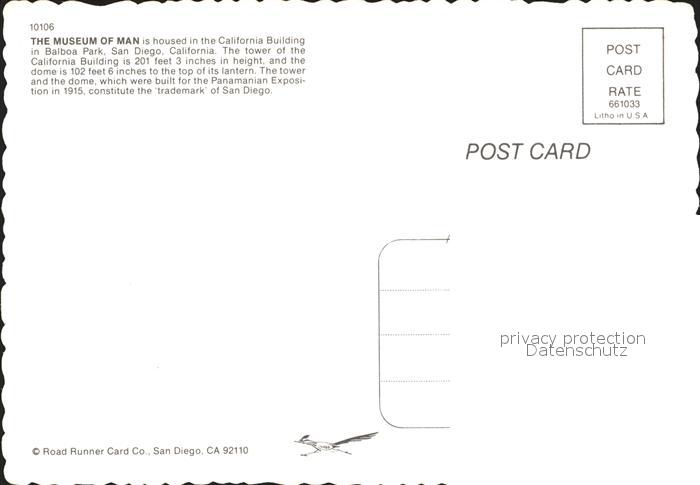 72329070 San Diego California Museum of Man postalisch nicht gelaufen Erhaltung siehe scans KatCode: 14140050000000