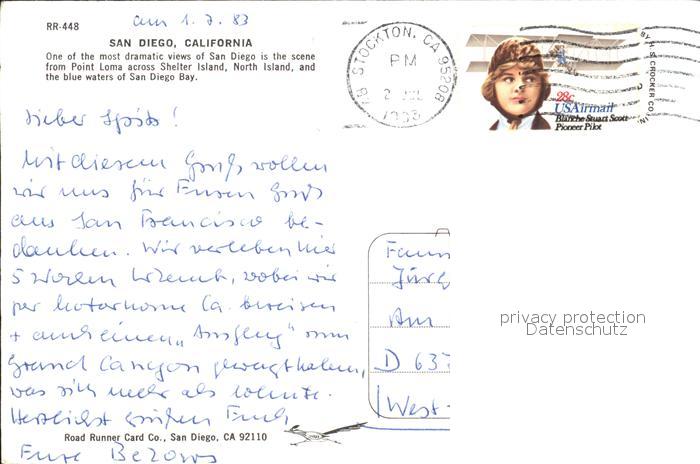 72499980 old postcard San Diego California Panorama Hafen postalisch gelaufen Erhaltung siehe scans KatCode: 14140050000000